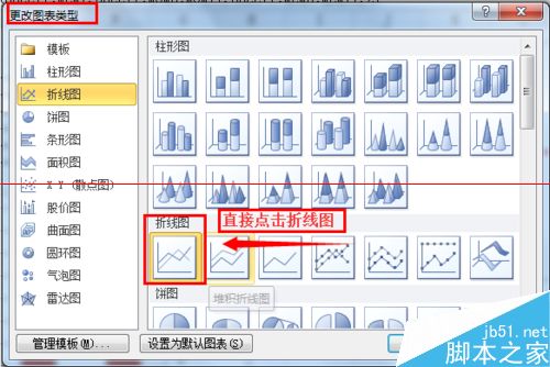8、在“更改图表类型”面板,单击“折线图”→确定