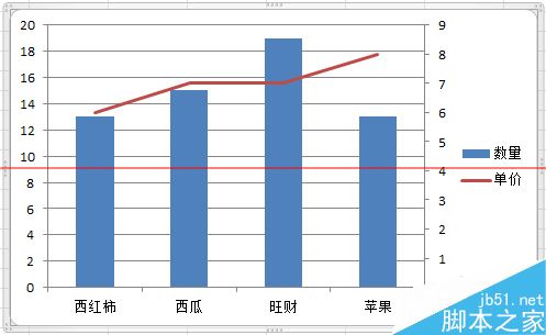 9、设置后图表样子,大功告成。成功设置柱状图和折线图在同一个图表上了。