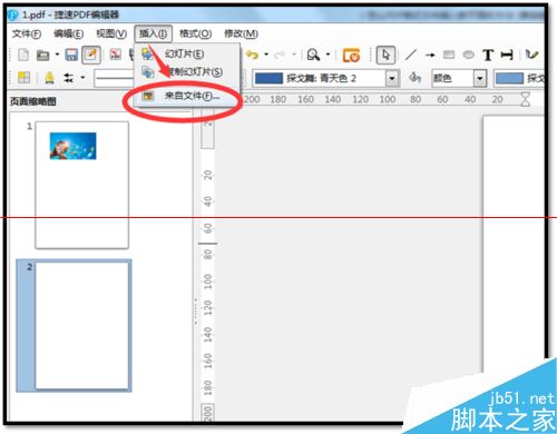 5、选中第二页空白内容,点击界面上的“插入——来自文件”。