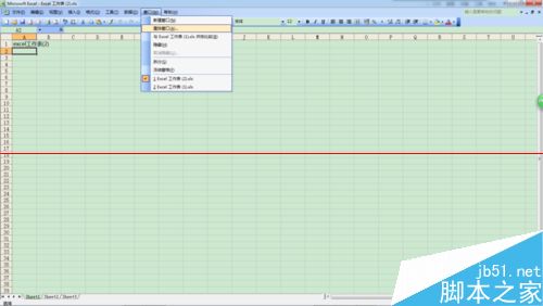 6、这里可以介绍一下“并排比较”的特殊用途;在“窗口”下拉窗中找到“与excel工作表(1)并排比较”;