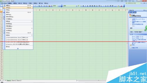 13、点击Book1窗口工具栏中的“菜单”选项,找到“菜单”下拉窗口中的“打开”选项;