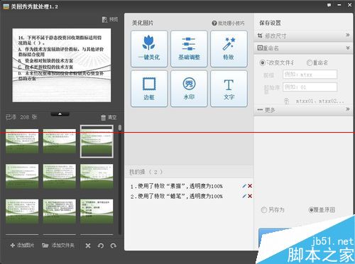 3、在特效里先选择黑白色,再选择素描,这时候深色背景就被去掉了,仅留下黑色字体