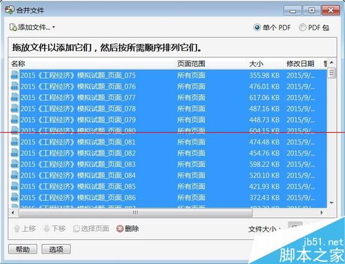 5、用adobe pdf的合并功能,将处理后的图片合并为一个文件。此处用adobe pdf,是因为合并的时候能按顺序合并,如有其它软件能按顺序合并也可以使用。