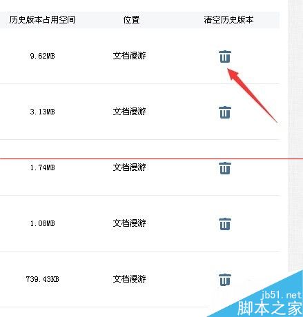 6、然后点击需要删除历史版本的文档右侧的删除按钮即可。