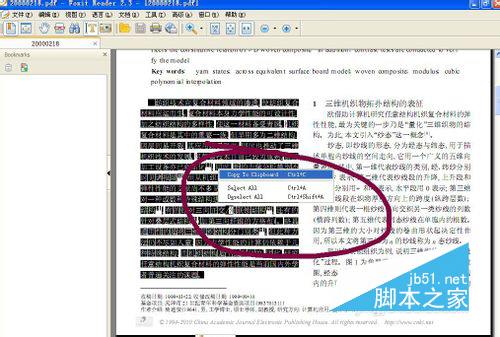 3.点击这个T字按钮,这是文本选择工具,点击之后用鼠标选取文段就会高亮显示。然后右键可以选择复制该段内容。(可以先把文字都复制,但是公式之类的会成乱码建议多次复制或者复制之后再删除)