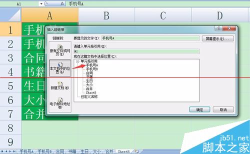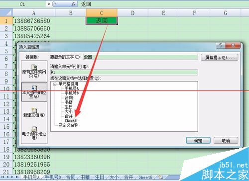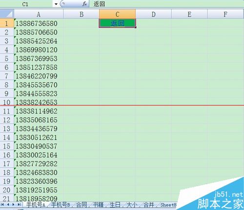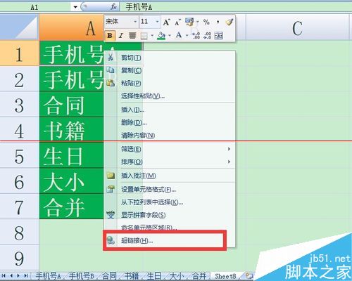 第五步:我们按照刚才的方法,在“手机号A”这个Sheet里设置一下返回到汇总表sheet8的超链接。