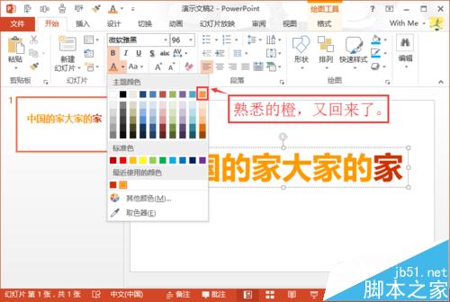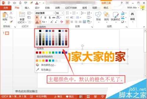 1、打开PPT之后,按照惯例修改下突出字体的颜色为橙色,可是这次却把我愣住了。原本该有的橙色,却消失不见了。