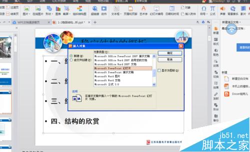 1、在对话框中选择“Microsoft Office PowerPoint演示文稿”