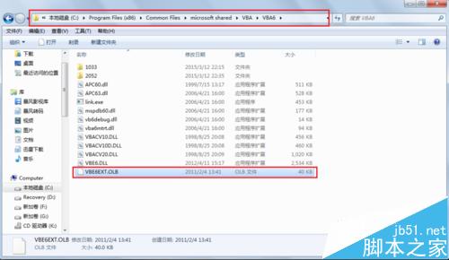 2、找到找到文件VBE6EXT.OLB,打开C:\Program Files (x86)\Common Files\microsoft shared\VBA\VBA6 因人而异,也有可能在Program Files目录里。