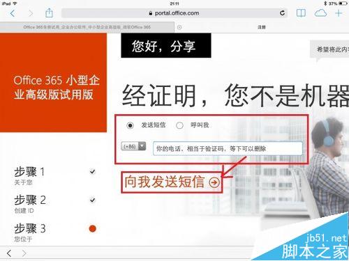 8、填写手机号接收验证码(此处的手机号仅有接收验证码的作用,最后可以从帐户资料中删除):