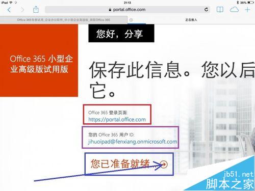 11、此处,紫色框内的就是等下激活的帐户第九步:打开iPad上的Word或Powerpoint或Excel(OneNote除外),登录刚刚注册的帐户,如果之前已经登录了自己原来的账户,那么先注销掉它: