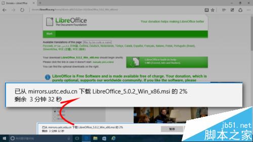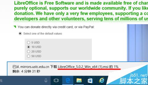 3、进入下载和捐赠页面之后,我们什么都不做,过一会儿下载即会开始。