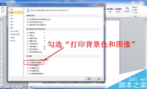 5、进入显示选项卡后,在下方有一组打印选项。首先勾选打印选项里的“打印在Word中创建的图形”。