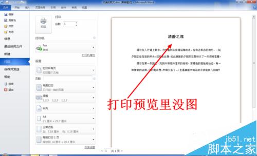 8、设置完成后在打开打印预览,此时Word中插入的图片就出现在打印预览里了,问题得到解决。