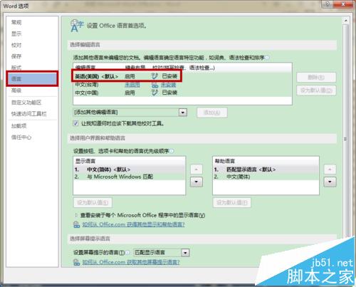 3、点击“语言”,可以看到右边编辑语言下面是“英语(美国)<默认>”,问题就出现在这个默认那里!