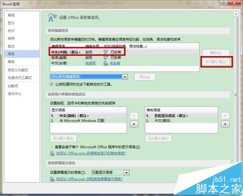 4、然后点“中文(中国)”在右边点“设为默认值”,如下图