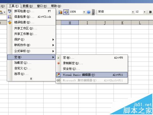 2、启动excel,选择工具--宏---visual basic编辑器,也可以按住Alt+F11键进入。
