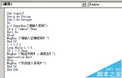 1、在设计之初,首先要想到如何实现登录,思路就是要我们输入的字符串要与系统是给予的要一致,不然就登录不进去,这样我们就需要利用到循环语句if...else。但是并不是无限制的去进行输入,需要规定相应的次数,那么我们就要判断一下,到底会给予用户多少次输入呢,循环一下,利用到do...loop语句。思想理清了,下面就可以进行制作了。