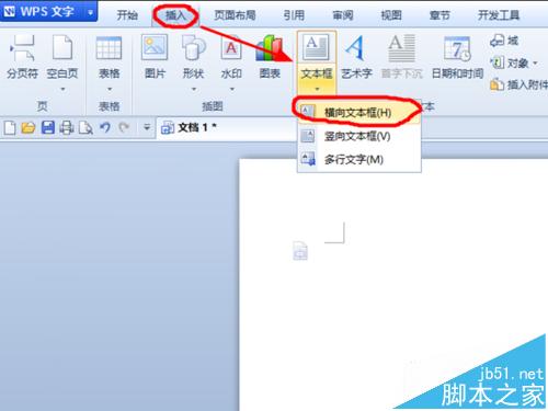 2、在上方的工具栏中找到“插入”,选择“插入”下面的“文本框”,根据自己的需要看是选择文本框,这里我们以选择“横向文本框”为例来说。