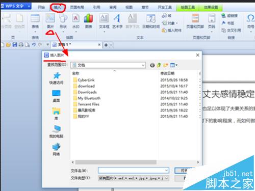 5、关于图片的插入。同理在上方的工具栏内选择“插入”,点击在下方的“图片”,选择自己要插入的图片的路径,点击图片之后即可到文本框中。然后根据图片的大小,可拖动文本框来进行调整图片。