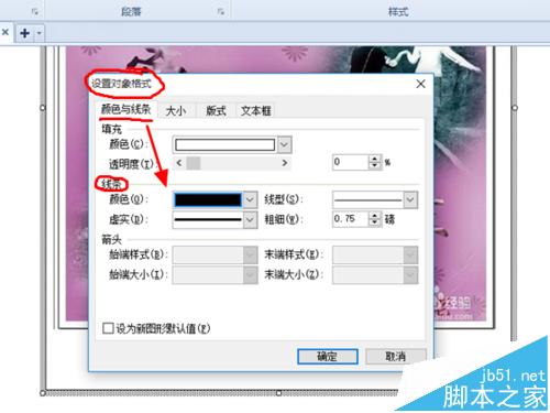 6、修改文本框的属性。将鼠标放置在文本框线条中,选中之后右击,弹出一个对话框,选择下方的“设置对象格式”,在该界面中的“颜色与线条”中选择“线条”,将颜色改成“无颜色”即可。