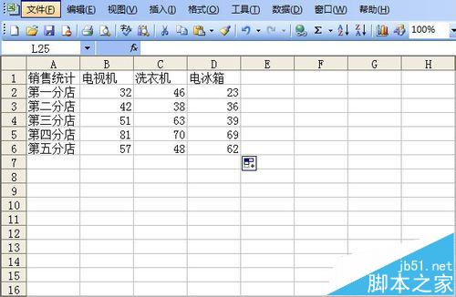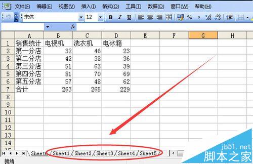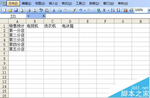 1、需要解决的问题。在这里为了方便起见,我提供一个比较简单的工作簿,来说明问题。这个工作簿记录了一家电器销售商店某个月5个分店的三种电器销售量。现在要对它们进行汇总,评定各分店业绩。打开工作簿文件,可以看到第一张工作表记录的第一分店的销售情况。