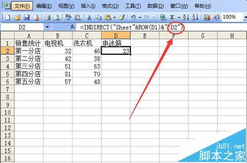 6、洗衣机的列也一样,使用填充柄,由B2向右复制,然后把公式中的B2改成C2,row括号里的单元格自动改成了C1。按回车键确认。