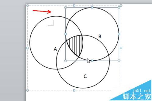 5、同时选中三个正圆,点击开始选项卡里面“形状交点”命令,这样我们可以获得三个圆的交叉部分