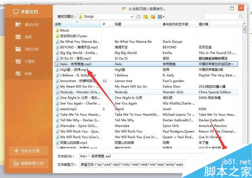 4.这时候会弹出一个选择框,选择要插入的音乐即可。