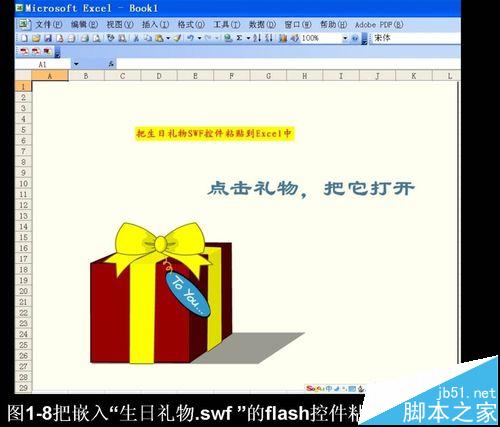 新建一个excel文档,,打开该文档,将PPT中的flash控件( ShockWave Flash Object )复制,粘贴到excel ,另存为“生日礼物.xls”,见图1-7至图1-9
