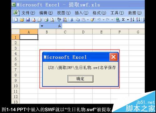 这里以提取生日贺卡中嵌入的”生日礼物.swf”为例介绍。 用“提取SWF.xls”提取嵌入PPT中的SWF文件。这个方法还没有见到正式的命名。用Microsoft Office Excel 2003制作出“提取SWF.xls”,用这个文件可以提取嵌入到PPT中的SWF文件,故把“提取SWF.xls”文件作为软件名。