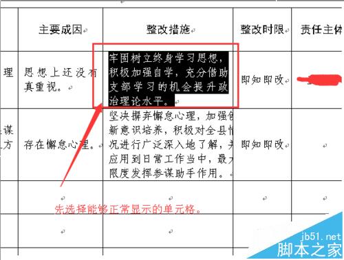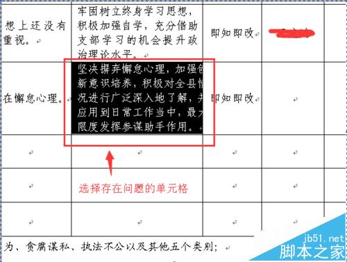 1、先选定存在问题表格当中的文字。