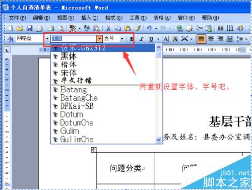 3、然后,再按照表格要求,对字体、字号情况进行重新设定,就OK了。