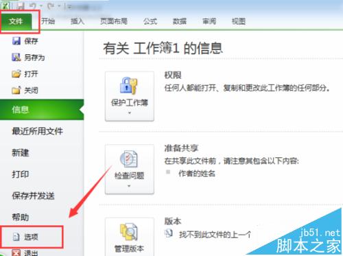 1、运行Excel2010表格编辑程序,依次点击“文件”选项卡-->“选项”菜单。如图所示;