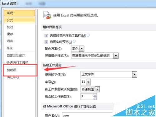 2、在打开的“excel选项”对话窗口中,选择左侧窗口的“加载项”点击它。如图所示;