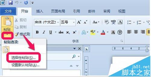 6、我后来还了解了一下,为了防止再次出现这样的问题,当你把visio中的图片复制到word时,请尽量使用选择性粘贴,然后选择Microsoft Visio 绘图对象粘贴,这样就不会出现乱码了,如图。点击粘贴的小箭头——》选择性粘贴。
