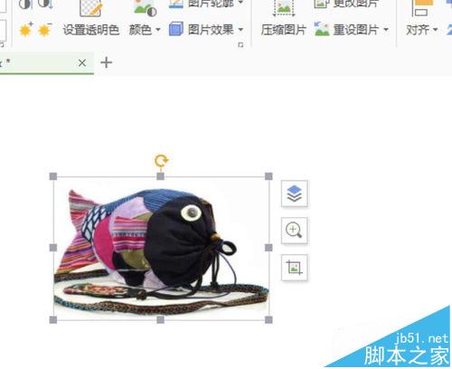 3、调节图片大小,将图片放在合适位置,编辑文字。图片的大小通过它四周的圆点可以拖动,根据你想要的整张图片的尺寸,适当托大或拉小。编辑文字时,我们注意,虽然页面是白色的,但我们输入文字时,还是有单元格之间的间隔的。