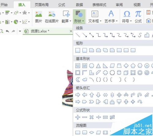 4、我们现在描写这个小布包的信息,给它取个简单的名称,产品信息,我们想让这个名称醒目些。那么可以用一个长方形将这个名称框起来。步骤是这样的:选择插入,形状,选择里面的长方形,则这个长方形就弹出在页面上。选择这个框,点填充可以为之填充颜色。右键编辑文字,可以把名称写上去。