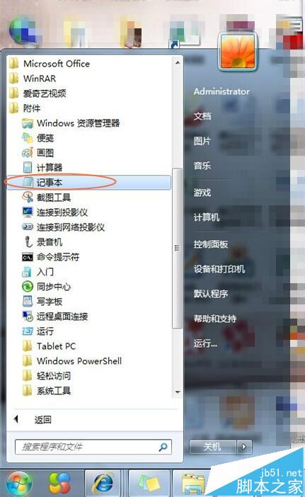3、再次,在”附件“的子菜单中选择”记事本“,然后会出现记事本界面