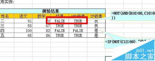 5、在如图示的案例中,我们使用NOT函数计算AND函数或OR函数的结果的反结果。