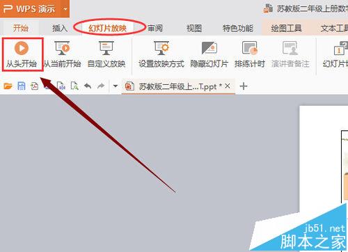 8、单击幻灯片放映,可以找到放映工具。单击从头开始,播放全部幻灯片。以上两种切换视图的方法,你学会了吗?