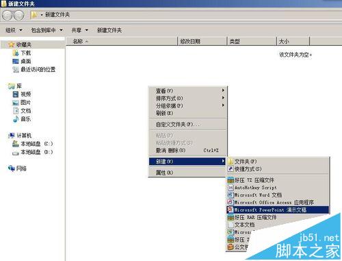 1、在文件夹内新建一个PowerPoint、Excel文件。如图