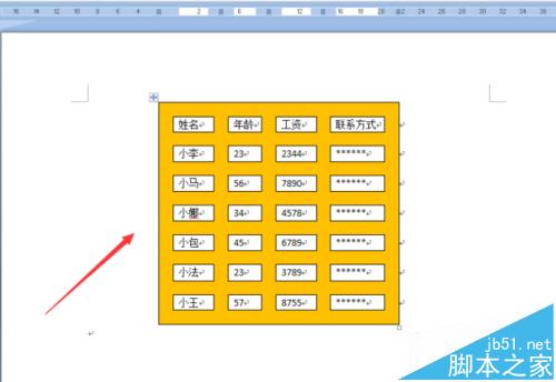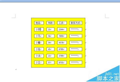 6、单击确定后,下面就是设置好的表格,表格是黄色的,而单元格选择的则是白色的,这样看起来是否很想市面上卖的贴贴纸呢,你可以选择自己喜欢的颜色来设置你所想的效果。