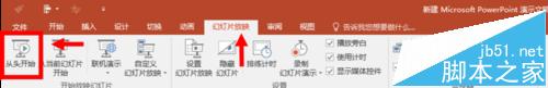 方法三:点击“幻灯片播放选项卡”>再点击“从头开始”