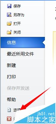 2、此时会弹出菜单栏,我们点击下方【帮助】栏里的【选项】
