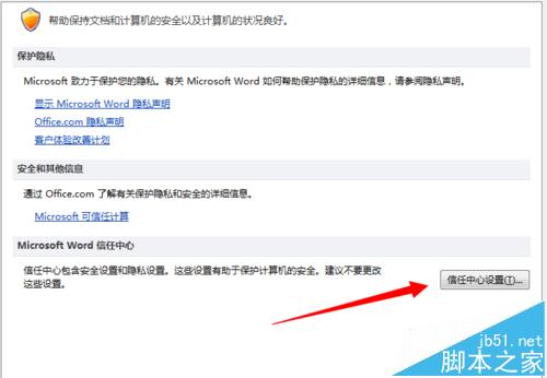 3、进入Word选项中,在左方点击打开【信任中心】选项