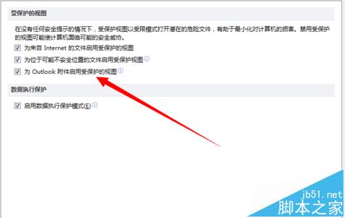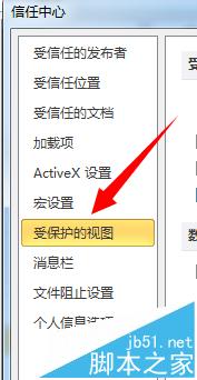 5、在信任中心,找到【受保护的视图】选项,这个就是问题所在