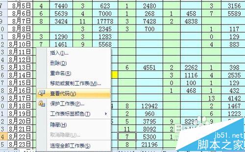 2、右键任意一个工作表标签,在弹出的下拉列表中选择查看代码。即弹出代码窗口。如下图所示。