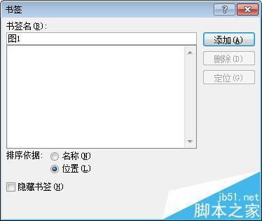 4、接着我们进行"交叉引用";这是用在题目中的,”如图1-1“这些。点击插入/书签,我们会发现是空的,现只需添加 图1;