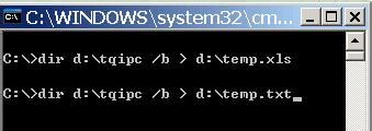 dir [drive:][path] /b > [drive:][path]filename